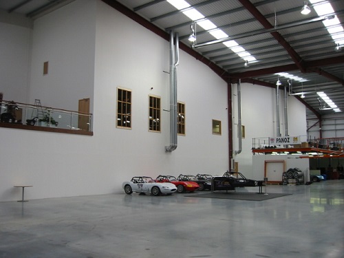Phase 2 was to install a mezzanine floor @ 133.2m to provide workspace below for the maintenance and manufacture of Ginetta cars and storage of car parts above.