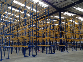 The warehouse was virtually complete by the time the narrow aisle pallet racking contract was awarded and this meant a quick turnaround time was essential. Working closely with the forklift truck supplier and the client we were able to finalise designs and have the racking delivered to site within 4 weeks. The installation period was also 4 weeks meaning that Samuel Grant could start moving products into their new warehouse early.